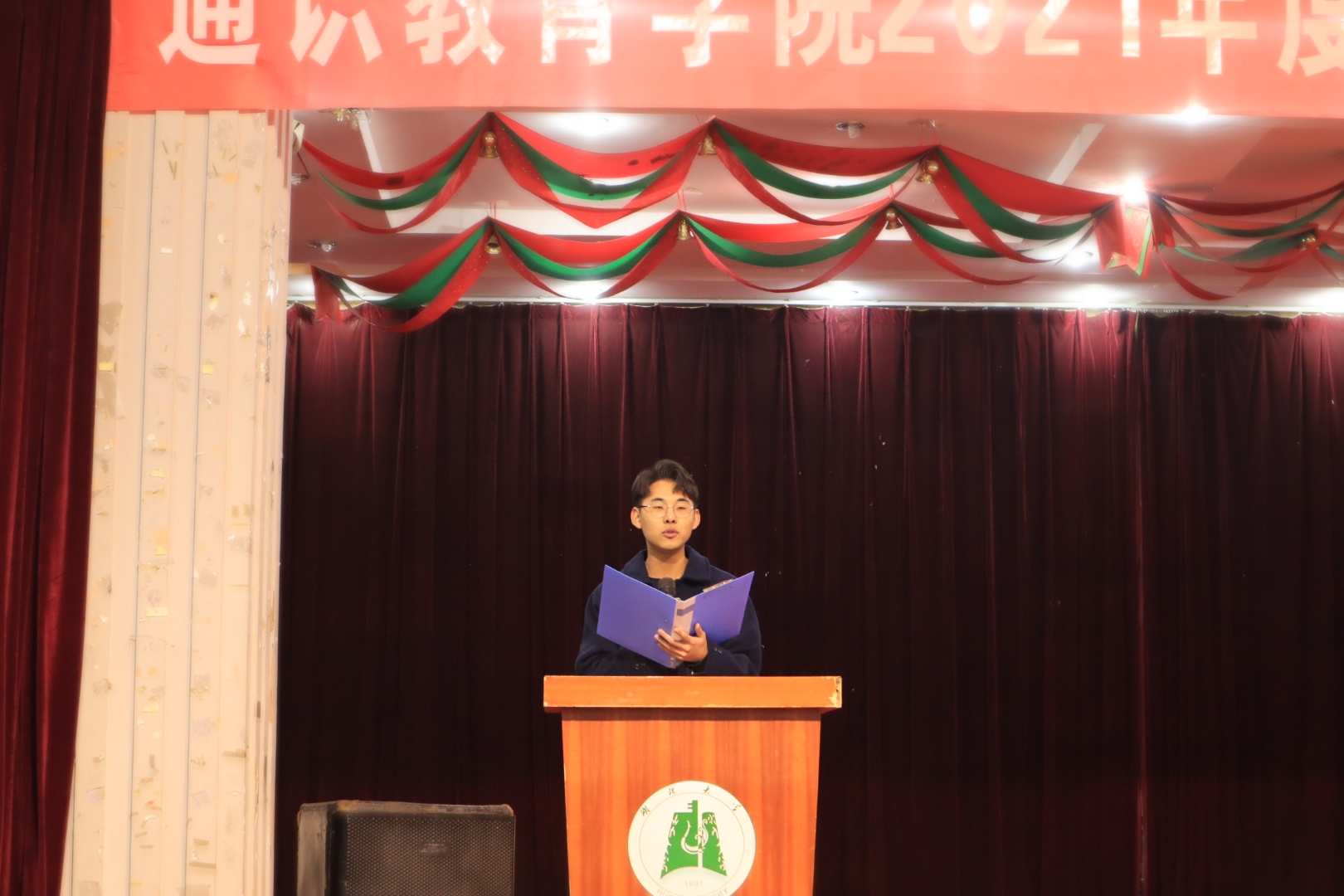 12月6日晚,湖北大学通识教育学院2021年度新注册志愿者宣誓大会在问津苑2楼举行。此次大会由通识教育学院青年志愿者行动指导中心承办,通识教育学院团委书记梁好、通识教育学院青年志愿者行动指导中心指导老师周小晓及各苑辅导员到场指导,西洋交响乐团和司南剧团应邀表演。