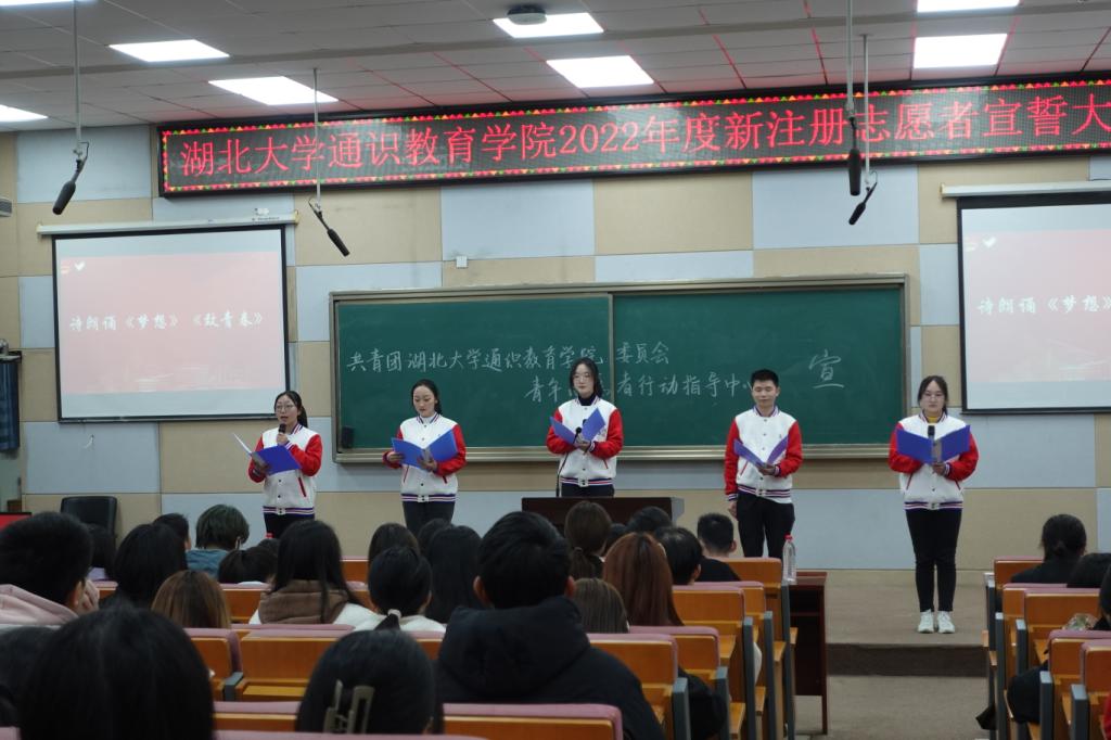 2月15日晚,我院2023年度新注册志愿者宣誓大会在教学楼B300举行。学院团委负责人胡喆罡、院团委指导老师朱奎闽、刘梦锜、院青年志愿者行动指导中心指导老师彭道涛、院学生社区团工委指导老师冷自衍出席此次宣誓大会。