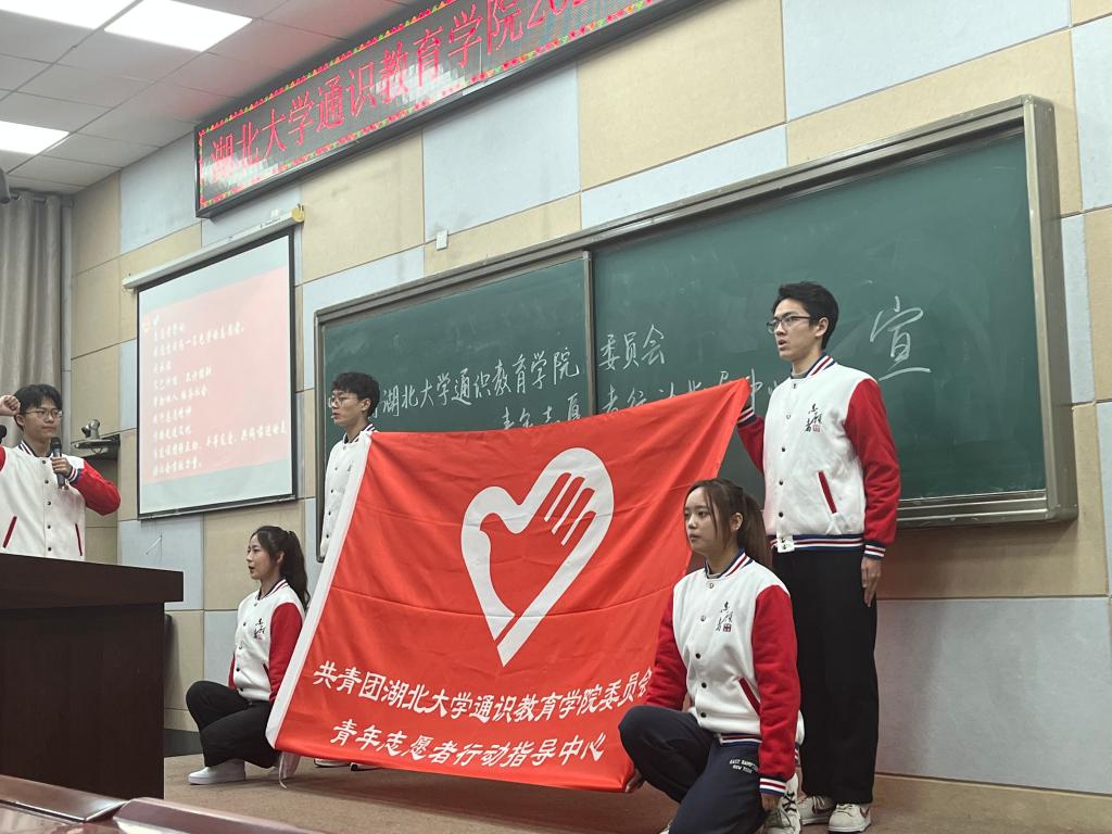 会上播放了湖北大学2022年青年服务志愿回顾视频,该视频讲述了湖北大学志愿服务队在“志愿者讲团史”“西部计划志愿者”“研究生护送支教团”等一次次志愿服务中不断成长的奋进历程。