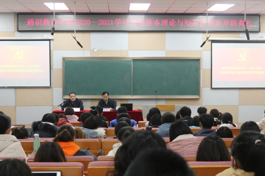 12月8日晚,通识教育学院举办2020-2021学年党的基本理论与知识培训班开班典礼暨首场辅导报告。本次培训班通过线下授课、线上视频会议结合的形式,在1个主会场、3个分会场同时进行。通识教育学院党委书记、院长李本义在开班仪式上讲话并进行第一次授课,院党委副书记宋韧主持开班典礼,全体辅导员和全院1161名入党积极分子参加会议。