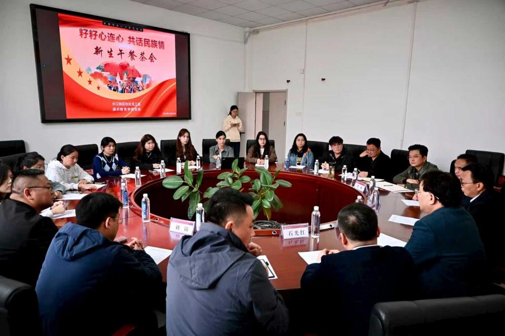 2025年10月29日,“籽籽心连心共话民族情”新生午餐茶会在湖北大学长江新区校区举行。校党委常委、长江新区校区党工委书记章天金,长江新区校区党工委、管委会和通识教育学院领导班子成员出席此次活动。活动中,他们与少数民族学生辅导员及10名少数民族新生代表共进午餐、亲切交流。