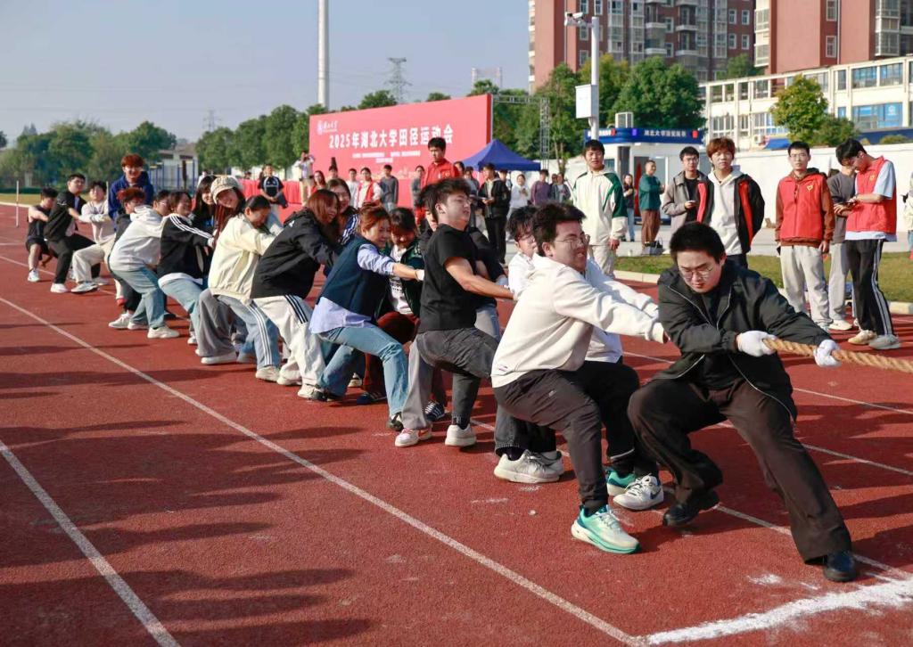 11月16日举行的师生拔河比赛将气氛推向高潮。哨声响起,师生齐心发力,口号震天,红绸带在绳间来回拉锯,场边加油声此起彼伏。